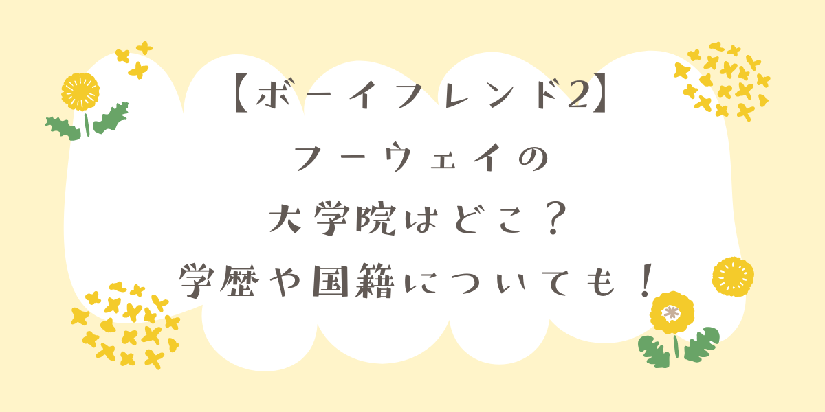 「フーウェイさんの大学院はどこ?」「学歴の詳細は?」「国籍はタイ純粋? それともハーフ?」って、気になっちゃうよね。
